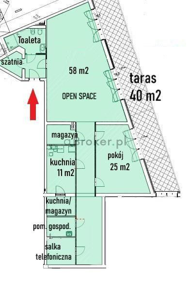 Dużym atutem lokalu jest przynależny, duży 40 m2 taras do wyłącznego użytku (rzut lokalu w galerii zdjęć).