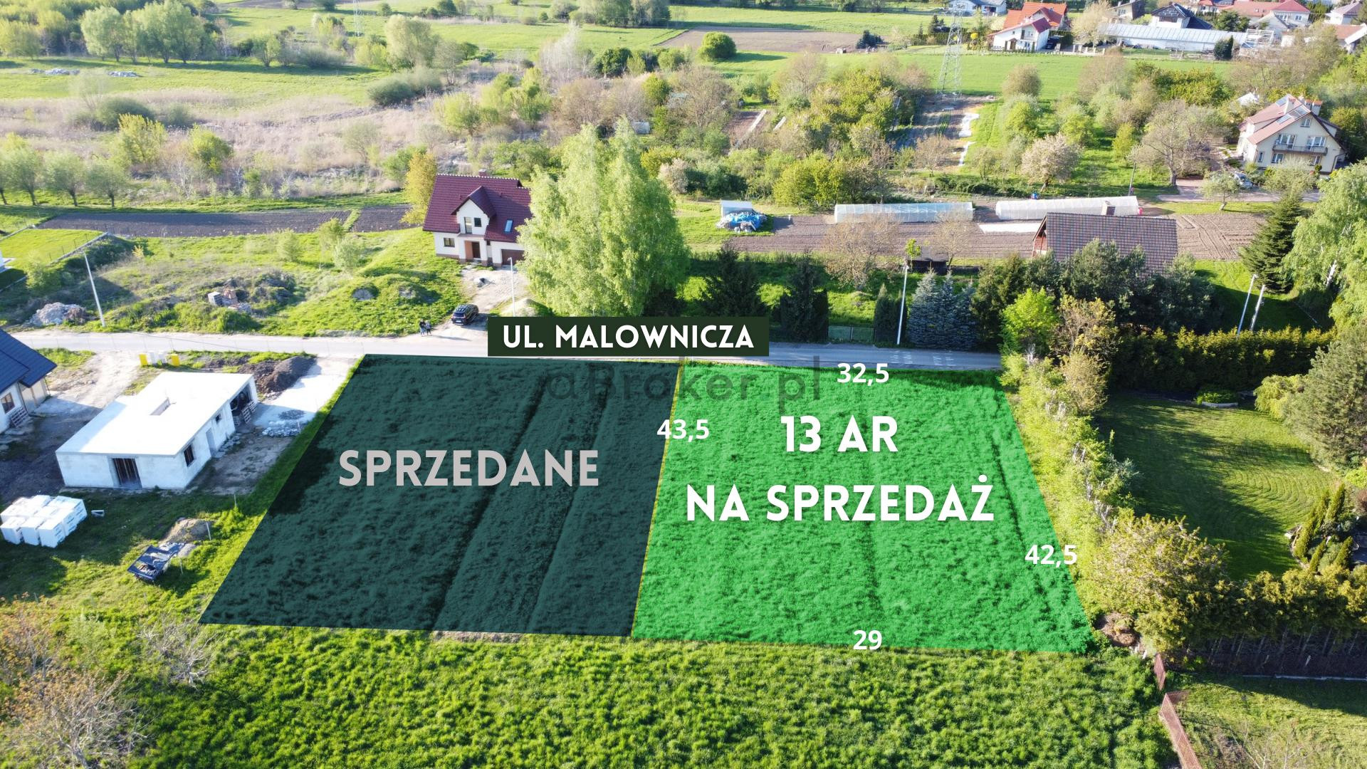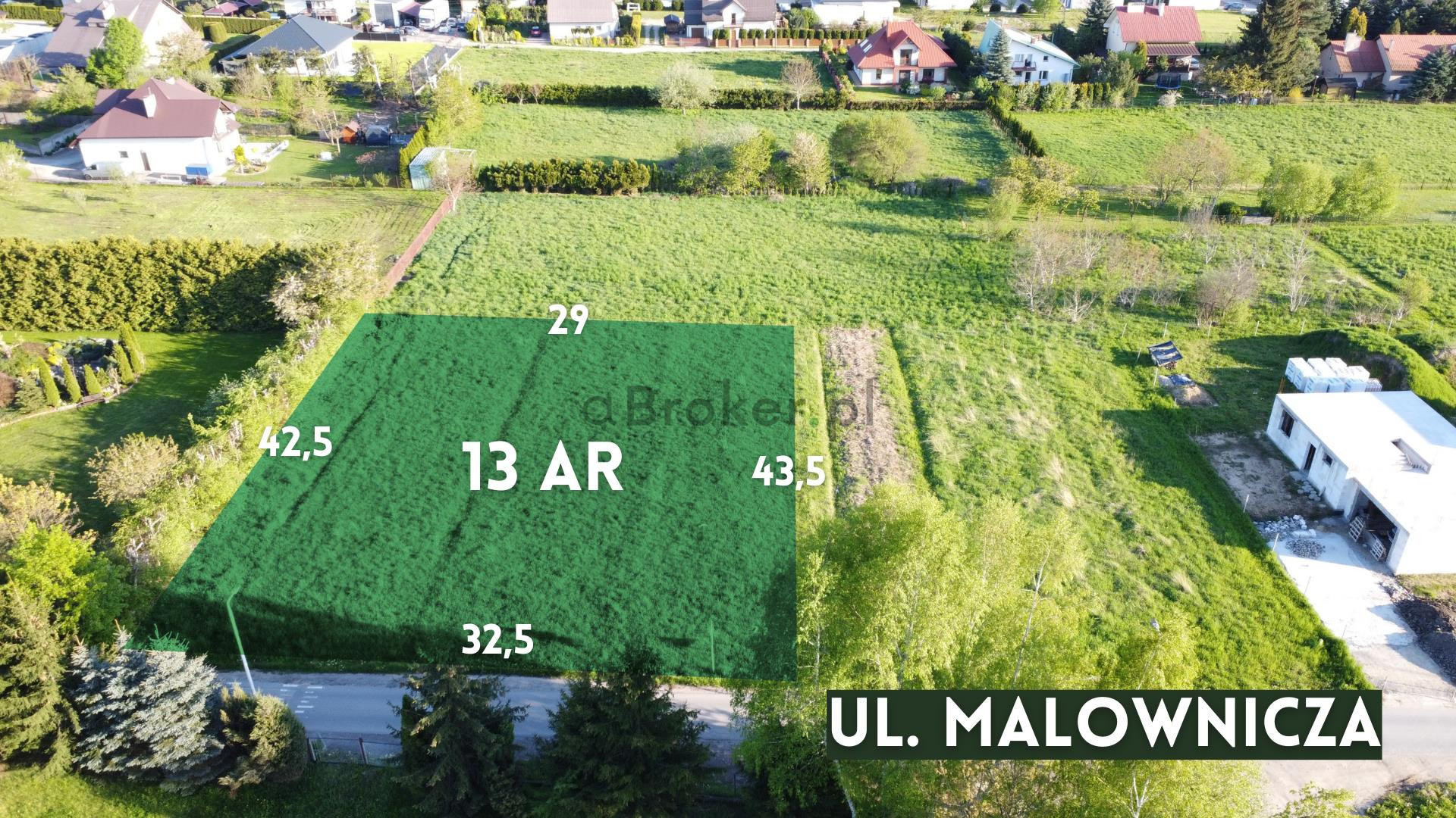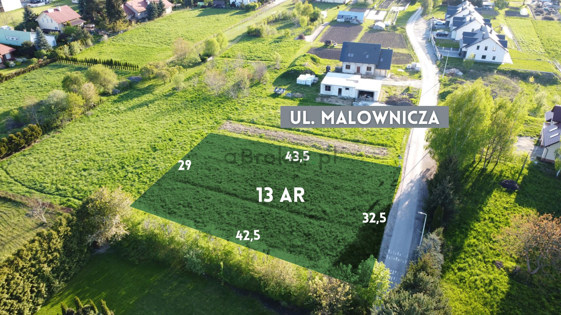 Do sprzedania atrakcyjna 13 ar działka położona w trzeciej linii zabudowy od al. gen. Sikorskiego, przy ulicy Malowniczej w Rzeszowie w południowej części miasta.