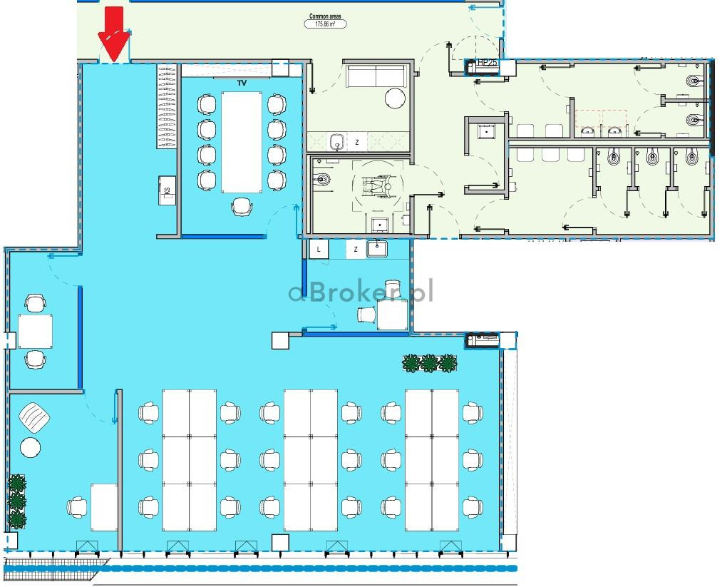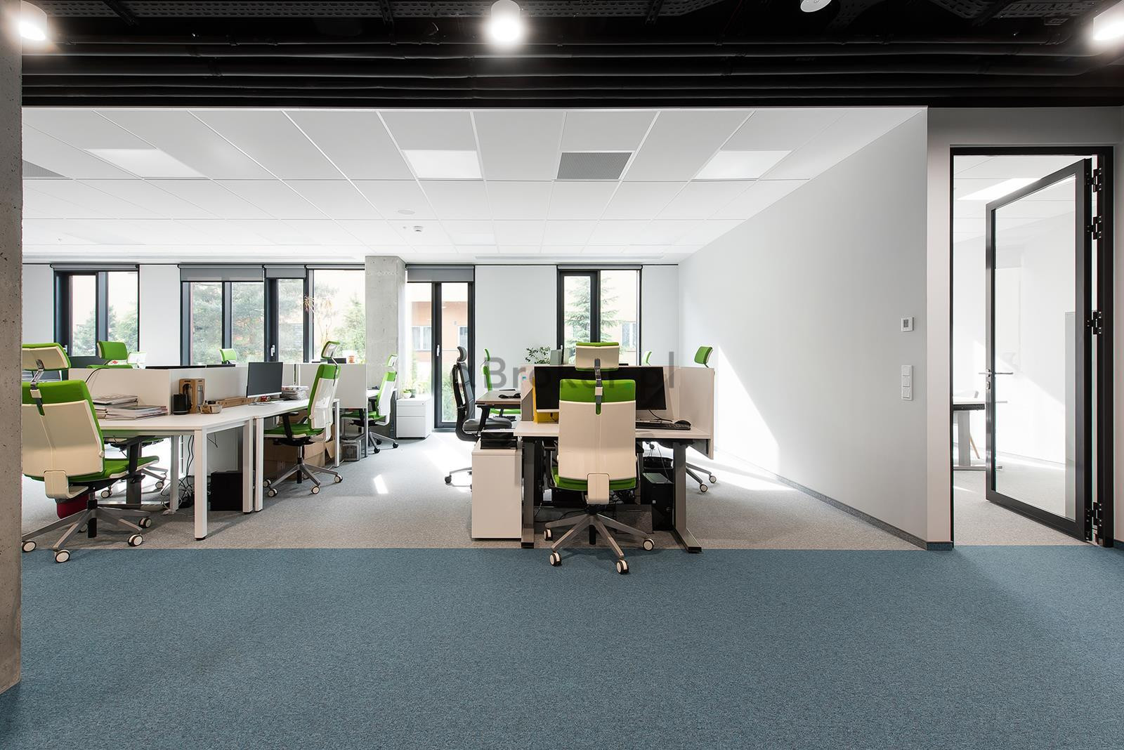 Biuro składa się z części open space, dwóch osobnych gabinetów, salki konferencyjnej oraz kuchni na własny użytek.