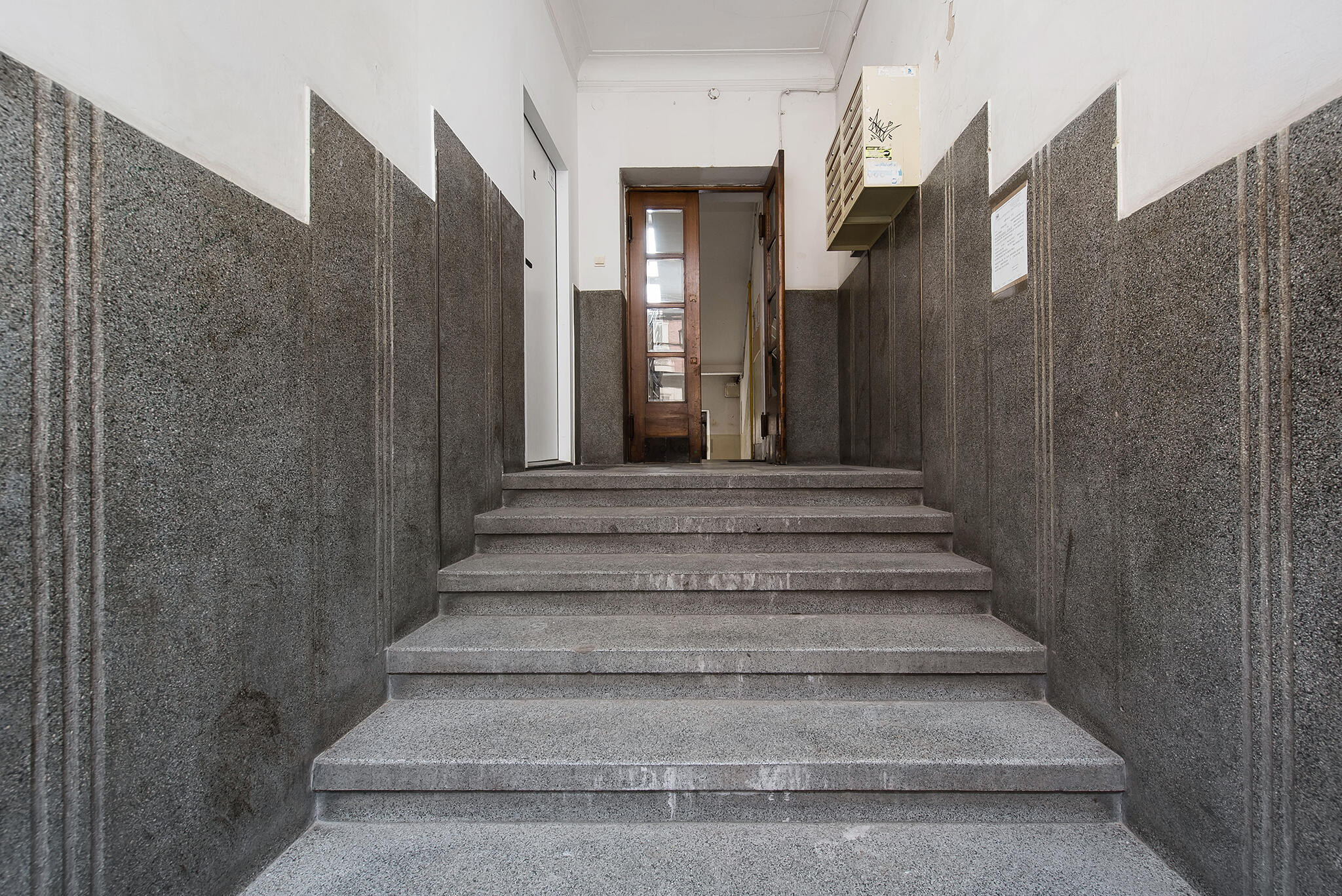 Mieszkanie znajduje się na wysokim parterze trzypiętrowego budynku i ma powierzchnię 42,60 m².