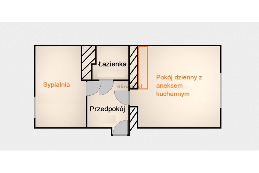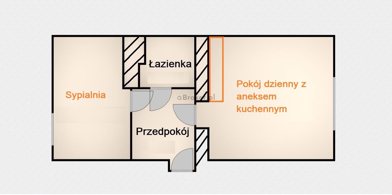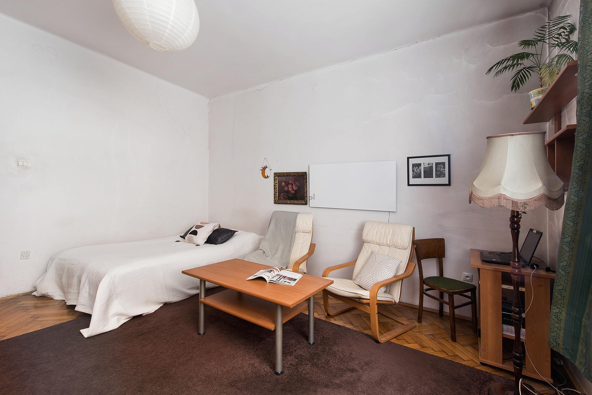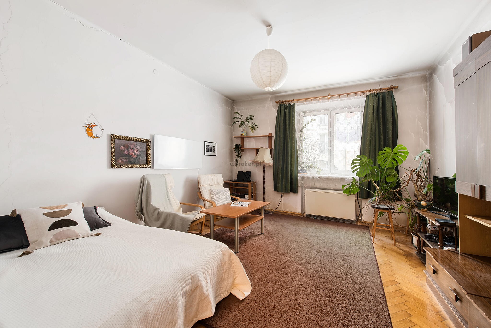 Mieszkanie do odświeżenia lub własnej aranżacji a układ pozwala na zrobienie dużego pokóju dziennego z aneksem kuchennym i osobnej sypialni.